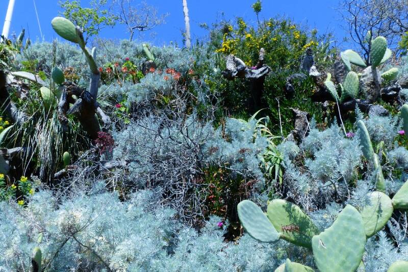 Nous souhaitons de joyeuses pâques à tous. Visite de Taormine, connue pour son théâtre grec que nous ne faisons pas, encore un de plus ! Autrement la ville est très jolie perchée à 200 mètres avec pleins de ruelles en pentes ou avec des marches. Du belvédère nous avons une magnifique vue sur Isola Bella qui est une réserve du WWF. Nous faisons un tour dans le jardin (Giadirni Di Villa Comunale) avec une vue sur l’Etna mais en parti caché par les nuages.