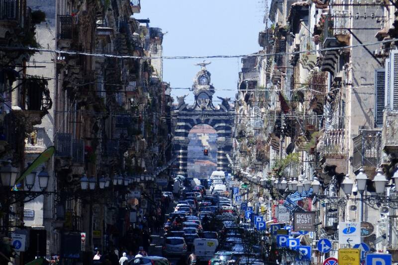 De notre stationnement 20 minutes de marche nous suffisent pour rejoindre le centre historique de Catania. Nous commençons par traverser le marché aux poissons où il est vendu de l’Espadon, mais aussi des crevettes roses et des gambas à 10€ le kilo. Cette ville renait de ses cendres après des éruptions, des tremblements de terre ou des guerres. Elle entretient un rapport vivant avec l’Etna, en dépit des nombreuses fois où il a déversé sa lave jusqu’à l’intérieur de ses murs. Nous avons visité le teatro greco, le duomo et divers chiesa et palazzo. Au hasard de notre balade nous traversons un grand marché où les camelots s’égosille à celui qui veut bien l’entendre et sur lequel nous avons acheté des oranges sanguines à 1€ le kilo et où nous avons vu beaucoup de légumes locaux tels que, courgettes, aubergines, haricots vert, oignons, salades, tout cela à des prix très intéressants.
