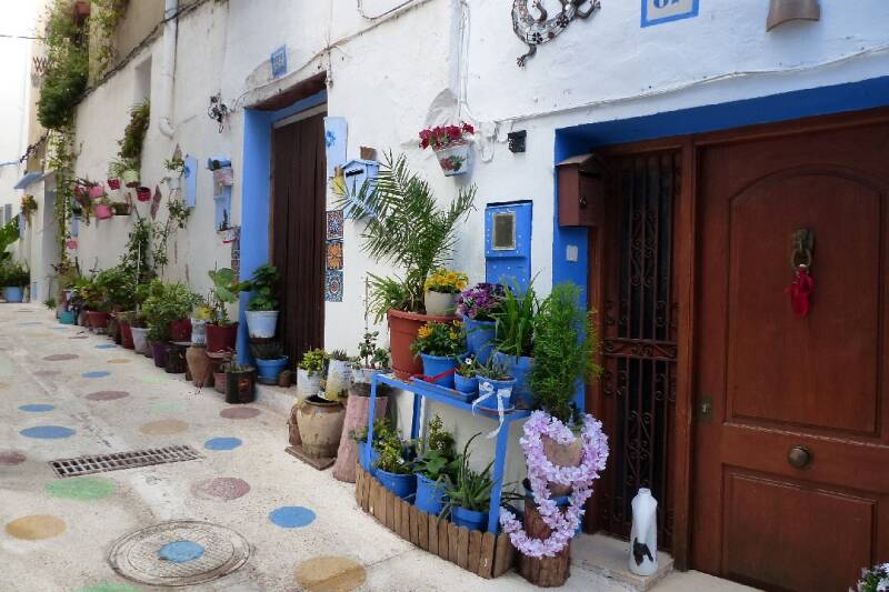 Ce matin nous nous dirigeons vers Alicante, changement radical de paysages, ici ils sont très arides et très peu de cultures. Après avoir tourné un peu pour trouver un parking, nous descendons jusqu’à la vieille ville et jusqu’à la plage pour ensuite faire un tour sur l’esplanade. En ce dimanche et comme il fait déjà très chaud, il y a beaucoup de monde ce matin. Parmi ses monuments remarquables, le château fort de Santa Bàrbara, perché sur un rocher nommé la « Tête du Maure », de par sa silhouette vue du côté mer. Ce rocher-là constitue le sommet du Benacantil, qui domine la ville. Les bâtiments religieux importants sont la cocathédrale de Saint-Nicolas, l'église de Sainte-Marie, et l'église du monastère de la Sainte-Face. Les édifices civils notables sont l'Hôtel-de-Ville, le Théâtre Principal, le Marché Central, le Palais de la Députation, la Maison Carbonell et la Maison des Sorcières.