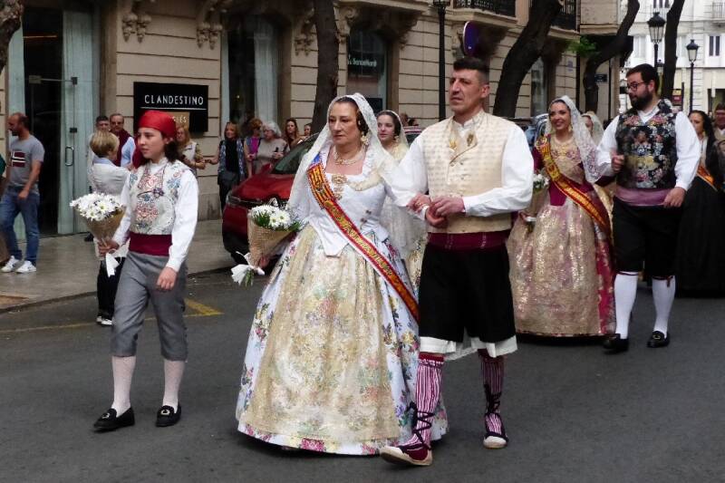 Le conseil municipal de Valencia a décrété que ce lundi 8 avril serait un jour férié en l’honneur de la San Vincente Ferrer. Ce matin nous avons commencé notre visite par la gare du Nord avec ses mosaïques et ses fresques en faïence et les arènes jouxtant. Ensuite nous avons rejoint la Placa ajuntament où se trouve la mairie et la poste et télégraphe. Ensuite le Mercado Colon, le musée national de céramique, la torre de Santa Catalina, la casa de San Vicente ferrer. A l’heure du déjeuner nous avons assisté aux processions en costumes traditionnels, des diverses associations de la ville. Cet après-midi comme ils disent ici »que calor » alors nous allons marcher dans l’ancien lit du fleuve Turia qui fût asséché suite aux inondations de 1952 et qui est devenu un espace vert de détente sur 7 kilomètres de long et ensuite visiter le jardin botanique pour prendre un peu de frais et contempler les diverses espèces de plantes et d’arbres principalement exotiques mais qui souffrent de la sécheresse locale vu les feuilles sèches qui jonchent le sol. Pour clôturer cette journée nous prenons notre premier repas du soir en extérieur.