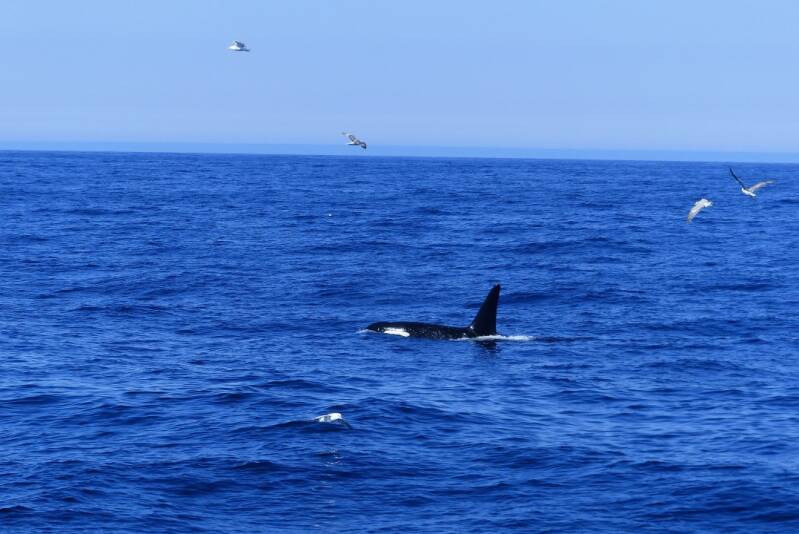 Nous allons profiter de ce beau temps pour réaliser un de nos vœux, à savoir, faire un safari en mer pour voir une des espèces de cétacés présents en cette période. Après un accueil chaleureux de l’équipe d’Artic Whale Tours, nous embarquons sur le bateau à 10 heures, pour un retour prévu vers 17 heures. Dés notre départ un Puffin nous fait honneur de sa présence dans le port. C’est au bout de 2 heures 30 de navigation et de scrutement de la mer à la recherche de signes nous indiquant la présence de cétacés, que nous voyons enfin nos premiers Orques accompagnés de leurs progénitures. Quel beau spectacle de voir ces mammifères vivre leur vie à l’état sauvage en toute quiétude. Après ce petit intermède nous continuons notre route toujours à la recherche du grale, c’est à dire la baleine. A deux fois dans l’après-midi nous voyons des Orques à la chasse aux poissons et les oiseaux nous aident bien à les repérer. Sur le retour nous aurons la chance d’apercevoir l’aileron d’une des petites espèces de baleine. Pour finir cette sortie nous passons près de l’île aux oiseaux pour voir les Puffins par centaines mais également un couple d’aigle de mer. Nous rentrons de cette journée bien fatigué mais satisfait d’avoir pu approché ces animaux dans leur milieu naturel.