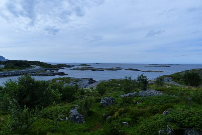 Dimanche 24 juillet, ce matin un peu de soleil au réveil nous met de bonne humeur. Nous reprenons la route panoramique de l’Atlantique en direction de Bud. Cette route longe une bonne partie de la côte et a un air de ressemblance à la Bretagne avec des petits îlots ici et là. Une fois terminé ce parcours et vu que le temps à l’air de vouloir rester clair avec un plafond assez élevé, nous décidons de continuer jusqu’à la prochaine route panoramique, qui est la Trollstegen ou route des trolls. Cette route de légende est sans nul doute une des plus belles du monde, elle est très étroite, toujours au bord du précipice, elle comprend 11 lacets avec une pente de 10%. Ce que nous avons vécu est tout simplement fabuleux, magnifique, étourdissant, grandiose, extraordinaire, il y tellement de mot pour décrire ce moment inoubliable.