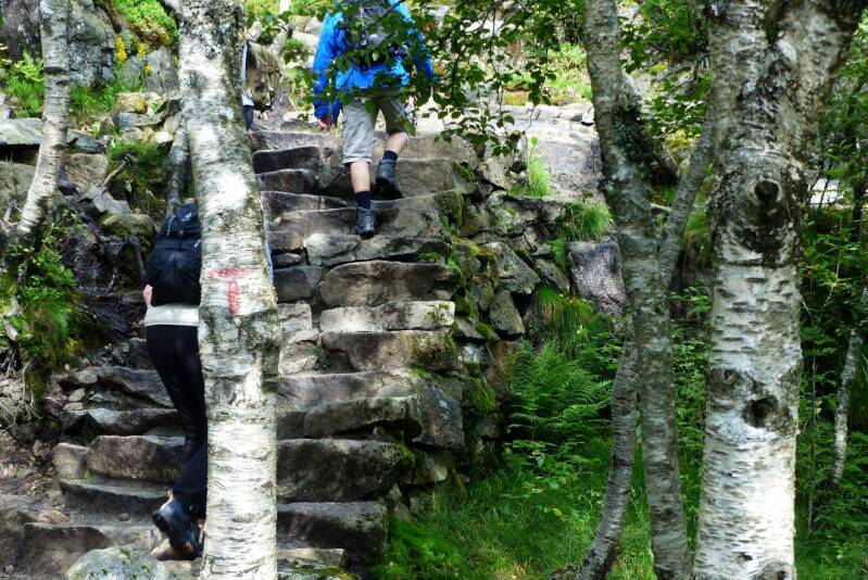 Jeudi 4 août, ayant récupéré plus vite que marie je consulte la météo. Apparemment une fenêtre propice pour monter au Preikestolen paraît fiable. Alors après avoir déjeuner direction Pulpit rock ou la chaire en français, pour effectuer cette randonnée faite par environ 300 000 personnes chaque année, d’une distance de 8 kilomètres aller-retour et d’un dénivelé de 330 mètres, il vaut mieux être un peu aguerri et en bonne condition physique car cela fait beaucoup travailler le cardio. Le site est volontairement non sécurisé pour le laissé dans son état d’origine et effectivement cela lui laisse sa beauté naturelle et aussi cet aspect grandiose et vertigineux car il faut dire que ce rocher se trouve à 604 mètres en aplomb au-dessus du fjord. Vraiment ce site mérite l’effort demandé, à ne pas manqué malgré le prix de 250 NOK pour le parking.