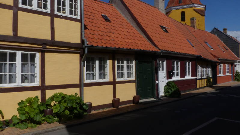 Dimanche 15 mai, ce matin nous allons quitter le Jutland (région du Danemark) pour rejoindre la Fionie (une autre région) et demain nous serons dans celle du Sjealland. Durant le trajet la physionomie a changée, quelques petits vallonnements, des cultures d’arbres fruitiers notamment des pommiers et le plus impressionnant ce sont les haies qui séparent les champs et bordent la route, sont principalement composées de lilas qui se trouvent être en pleine floraison en ce moment, cela est très agréable et parfois ce mélange de couleur lie de vin avec le jaune du colza donnerait des idées de tableau à certains peintres. Nous arrivons à Faaborg sous un ciel radieux et 18°, cela nous permet de mettre des tenues plus légères. Le centre ville est désertique aujourd’hui dimanche, mais reste malgré tout agréable à visiter par ce beau temps et nous a permis de voir encore quelques belles maisons à colombage. En nous promenant sur le ponton qui sert de plage sur la Baltique et alors qu’un papa avec ses filles s’essayaient à quelques plongeons dans l’eau, nous remarquons des choses qui flottaient dans l’eau, en nous approchant nous remarquons que ce sont des petites méduses.
