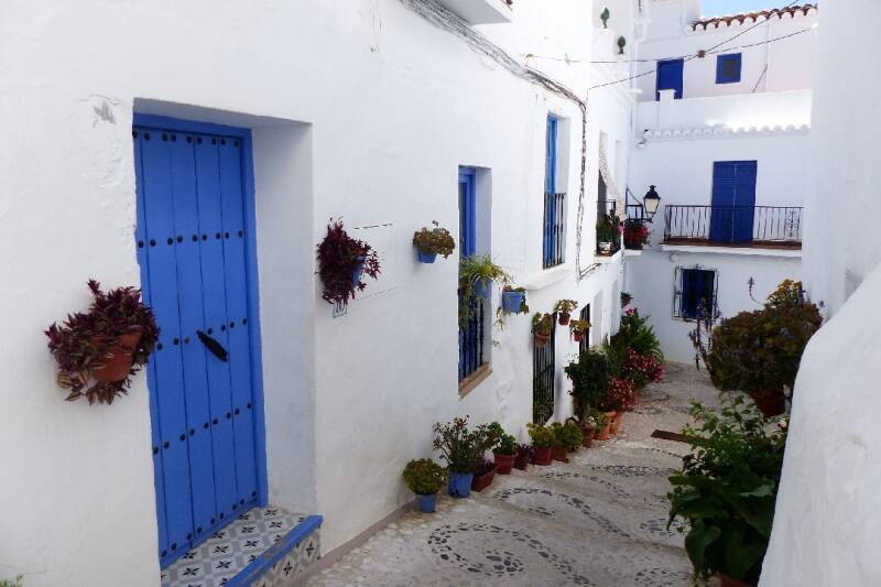 Ce matin chose très exceptionnelle, nous nous sommes levés 1 heure plus tard qu’à l’habitude et pourtant on ne s’est pas couché tard. Le soleil brille déjà bien et le ciel est tout bleu donc nous en profitons pour aller à Frigiliana qui se trouve juste au-dessus de Nerva. Nerva fait parti d’un des plus beaux villages blancs d’Andalousie et il est vrai qu’il mérite son statut avec sa situation mais aussi avec ses ruelles toutes fleuries. Avec le temps qu’il fait aujourd’hui la carte postale est encore plus belle et les couleurs sont encore plus éclatantes. Cet après-midi sur la fin de notre parcours nous apercevons de nouveau la Sierra Nevada enneigée qui se détache dans le ciel azuré.