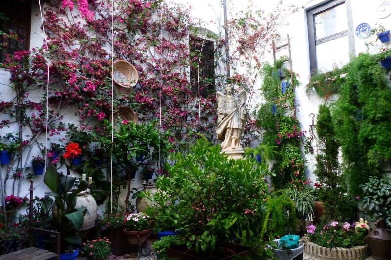 Comme expliqué hier soir, la nuit a été très compliquée à gérer, pas d’air, température qui n’a baissée qu’en fin de nuit et pour clôturer le tout, il faut se préserver des moustiques en mettant les moustiquaires qui ralentissent le flux d’air dans le véhicule. De ce fait ce matin nous nous sommes levés de bonne heure à la fraîche pour visiter Cordoue, nous y avons vu des vestiges romains, arabes et beaucoup de belles choses, notamment des églises mais surtout des patios et ruelles fleuris ce qui apporte beaucoup de charme à cette ville, qui fait parti de nos coup de cœur, mais il reste encore le plus beau pour demain. A la pause de midi nous faisons halte dans un restaurant et nous nous installons dans le patio au frais car la température est repartie de plus belle pour atteindre un sommet ce soir. Pour nous en sortir nous bravons les interdits Espagnols qui nous empêchent des sortir chaises et table dehors, car à l’intérieur du camion tout est chaud, même l’eau froide qui est à bonne température pour faire la vaisselle et prendre les douches.
