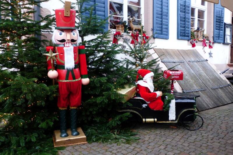 Après avoir passé la nuit au bord du Rhin juste à la frontière Allemande, nous franchissons le pas et passons de l’autre côté pour nous rendre à Freiburg. Pour nous rendre à notre dix neuvième marché de Noël nous empruntons le tramway qui nous prend devant l’aire de camping-car et nous dépose en plein centre-ville. La vielle ville à quelques atouts et nous en découvrons quelques uns mais ce n’est pas le but de notre visite pour cette fois-ci. En fait le marché est réparti en cinq places et toutes proches les unes des autres mais il n’a pas l’attrait attendu, certainement au fait qu’il y a plus de stand pour s’alimenter qu’artisanaux mais ce n’est pas pour déplaire à la clientèle locale qui se retrouve autour d’un verre de vin chaud et de victuailles locales comme les saucisses grillées, les galettes de pommes de terre à l’huile et autres.