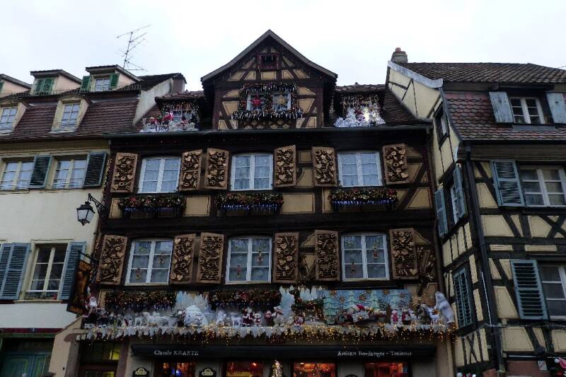 Ce matin nous passons pour faire les services à Sélestat où nous trouvons beaucoup de camping-cars et une fois fait nous rejoignons Turckheim qui sera notre camp de base, puisqu’en fait nous allons visiter Colmar après avoir emprunter le train pour nous y rendre. Noël approche à grand pas et nous trouvons beaucoup de point de vente de sapins ici et là, même en ville. Notre treizième marché de Noël va être très féerique comme pour les autres avec les façades et vitrines des commerces mais surtout à la tombée de la nuit quand tout s’illumine et que les façades s’animent ou se colorent grâce à des projecteurs de dernière génération. Nous nous surprenons même à saliver devant une vitrine d’un artisan chocolatier où sont exposées pour la vente des réalisations toutes plus belle les unes que les autres. Encore de bons moments passés dans une bien belle ville, surtout en habits de lumières ce qui lui donne une autre dimension.