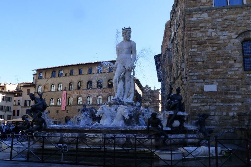 Après avoir passé une bonne nuit malgré un stationnement sur un parking en ville, nous allons nous attaquer à notre première grande ville la bien nommée Firenze ou Florence. Comment qualifier cette ville, la grandiose, la majestueuse, la magnifique, la richissime tellement nous en prenons plein les mirettes. En plus nous avons pu profiter d’une journée ensoleillée et on n’ était pas les seuls puisqu’il y avait des groupes de touristes par dizaines, on se serait cru en plein été tellement il y avait d’affluence. La journée et 13 kms de marche, nous ont permis de voir les monuments les plus emblématiques, (Piazza del Duomo, Duomo, Campanile, Battistero, Pallazio Vecchio, Piazza Delle Signoria, Santa Maria Novella, San Lorenzo, santa Croce, le Palais Pitti, Ponte Vecchio avec ses boutiques de bijoux et quelques autres) sachant que nous ne faisons que très rarement des musées. Pour clôturer notre journée nous allons nous mettre au vert pour une journée dans le Chianti et en déguster un verre dès ce soir.