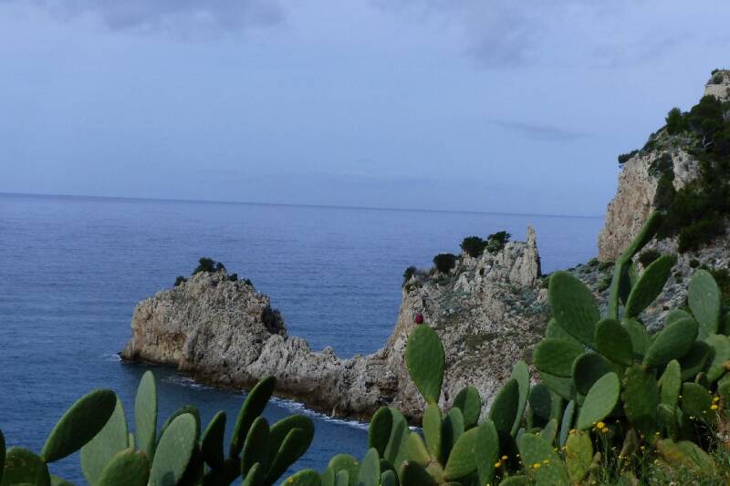 Ce matin nous empruntons la route des crêtes à la sortie de Nice et nous allons longer la riviera côté français, nous allons même surplomber Monaco. Nous reviendrons visiter ce secteur plus tard, mais nous utiliserons les transports en communs tellement il est difficile de circuler et stationner. A 11h30 nous franchissons la frontière italienne sans encombre, même pas un petit contrôle d’identité. A peine franchi, des migrants déambulent sur les trottoirs, sans doute refoulés par les carabiniers armés se trouvant plus bas lors de notre passage. Nous voilà maintenant longeant la riviera di ponente et les villes se succèdent et sont touche à touche, d’ailleurs notre moyenne tombe à 50 à l’heure cela nous laisse le temps pour admirer le paysage tout en ayant un œil sur les rétros pour surveiller les 2 roues motorisés et regarder pourquoi on entend des klaxons tinter. Cet après-midi nous empruntons la piste cyclable qui nous relie à San Remo. Nous visitons le centre historique n allant dans le quartier de la Pigna, celui-ci se trouve sur un promontoire et le moins que l’on puisse dire c’est qu’il faut être en bonne santé pour y habiter tellement les ruelles grimpent, tandis que la ville basse est traversée par une longue rue piétonnière bordée de magasins aux noms prestigieux de la mode italienne, mais on y trouve également des noms bien connus chez nous. Ici la végétation est luxuriante, certaines plantes d’été chez nous, forme ici des haies qui fleurissent déjà. L’année passée aux Pays-Bas nous comptions les vélos par milliers et bien cette année ce sera les scooters qui vont les replacer.