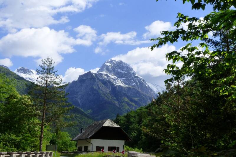 Ce matin nous nous arrêtons encore au bord de la Soca à son endroit le plus serré, car hier le chemin pour nous y mener était trop compliqué. Il est vrai que cette rivière est magique et on ne s’en lasserait pas de la contempler. Nous ne prenons pas la route qui passe pas le col de Vrsic car en travaux et plutôt difficile, nous prenons l’option de passer par l’Italie pour contourner le problème néanmoins le paysage est magnifique et pouvons quand même profiter de la montagne la plus haute de Slovénie, le mont Triglav. Une fois revenu en Slovénie nous nous arrêtons au lac de Jana qui a la particularité d’avoir des eaux bleues. En début d’après-midi nous visitons les gorges de Vintgar qui elles ont les eaux vertes, le moins que l’on puisse dire c’est que l’on en voit de toutes les couleurs. Ce soir nous sommes stationnés au milieu des montagnes à proximité du lac Bohinj.